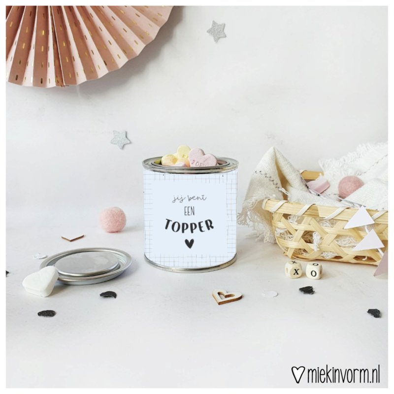 Blikje met wikkel “Jij bent een topper”
