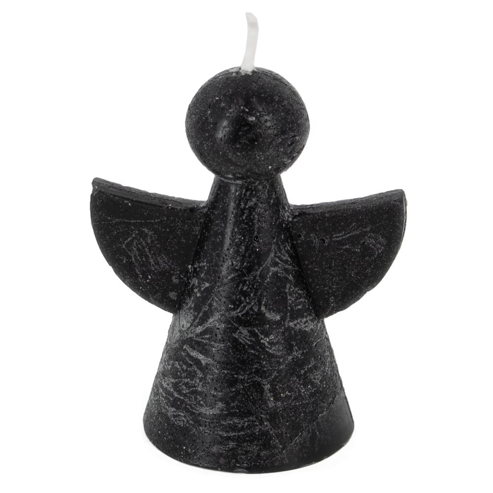 Dit engelvormige figuurkaarsje in het zwart verlichte sfeer toe aan je interieur.