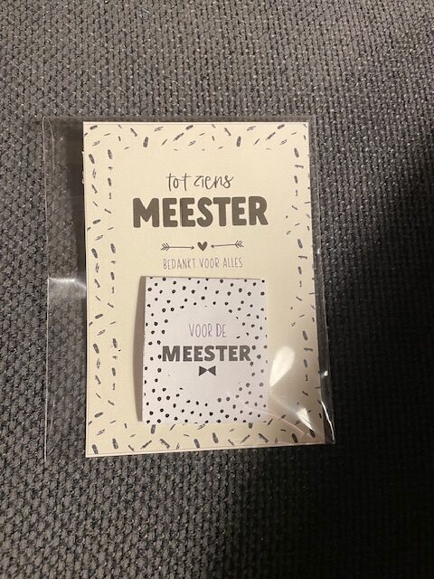 Kaartje met thee zakje voor de Meester
