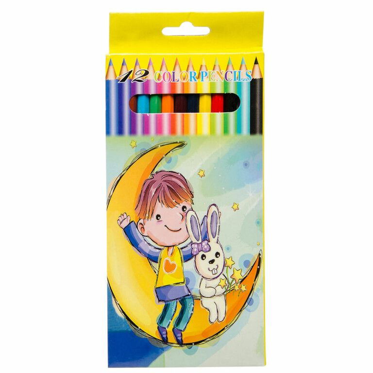 Grote 12-Delige Kleurpotloden Set. Afm verpakking: 9 x 20 x 0.5 Cm.