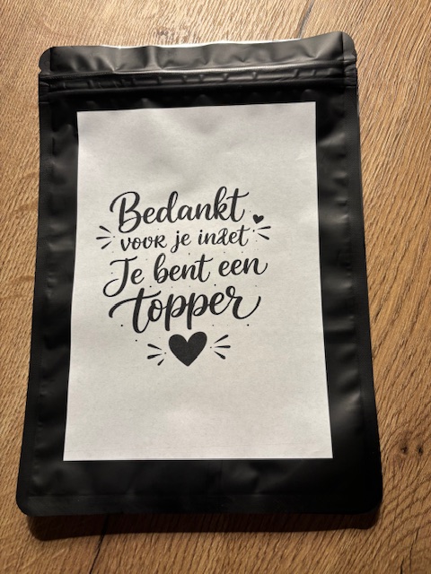 / “lege snoepzak” Bedankt voor je inzet, je bent een topper”
