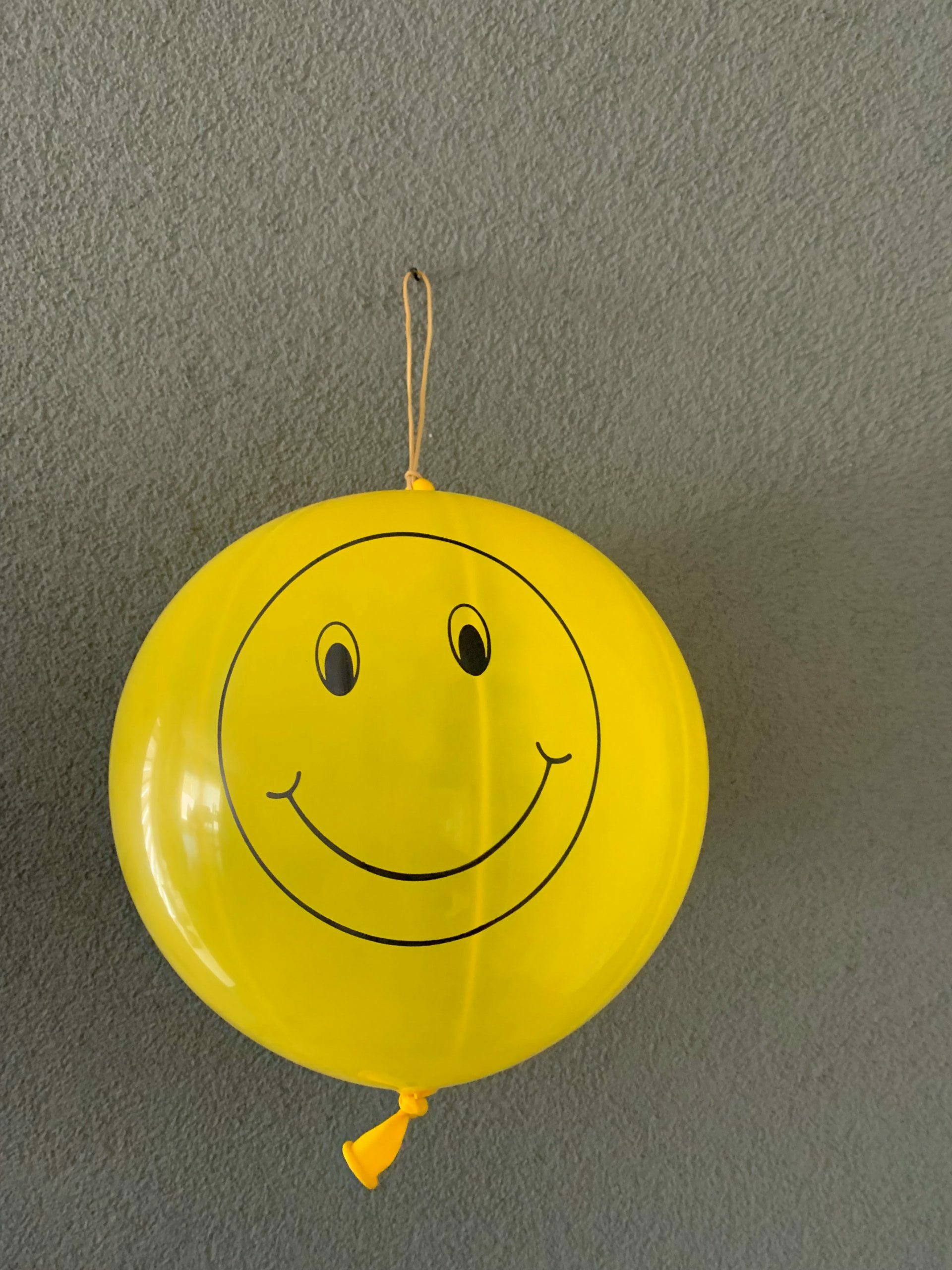 Op de ballonnen zitten een vrolijke Smiley afbeeldingen.