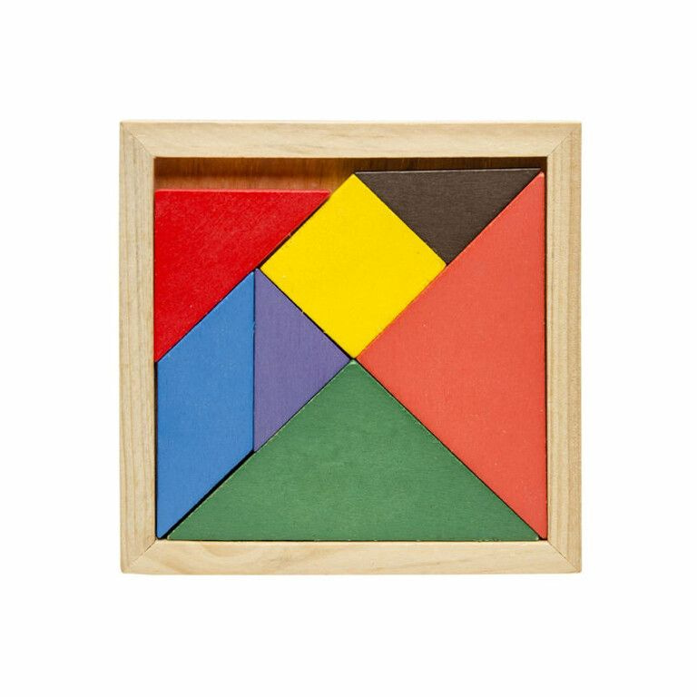 Houten Tangram puzzel, afmetingen: 11 x 11 x 0.5 Cm.